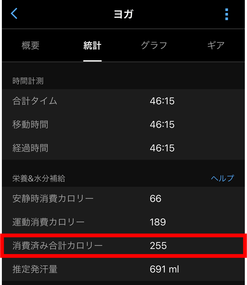 消費カロリーも255kcalと控えめで、体感とも合っていました。