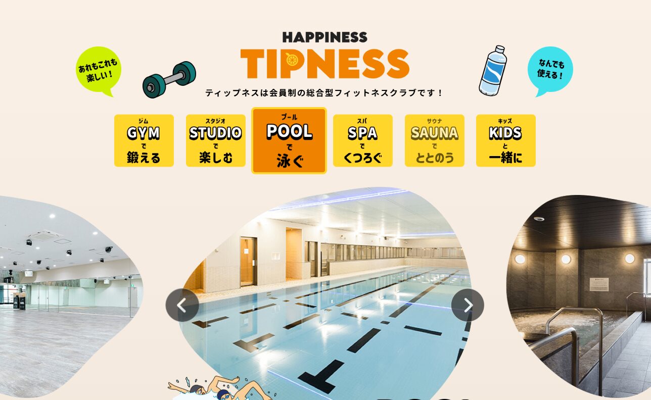 室内プール・リラクゼーション施設・スタジオレッスンを受けたい方は、ルネサンス(全国エリア)やティップネス(関東・中部・近畿エリア)のような総合型フィットネスクラブがおすすめです。