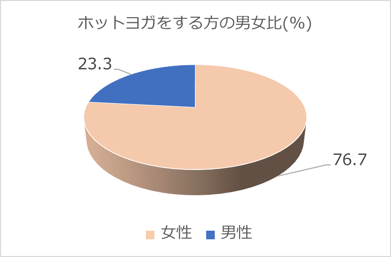 通常のヨガと比べてホットヨガは、環境が高温多湿で発汗しやすくややハードなので、ヨガ人口の男性割合(5~15%)と比べて少し高めになったものと思います。